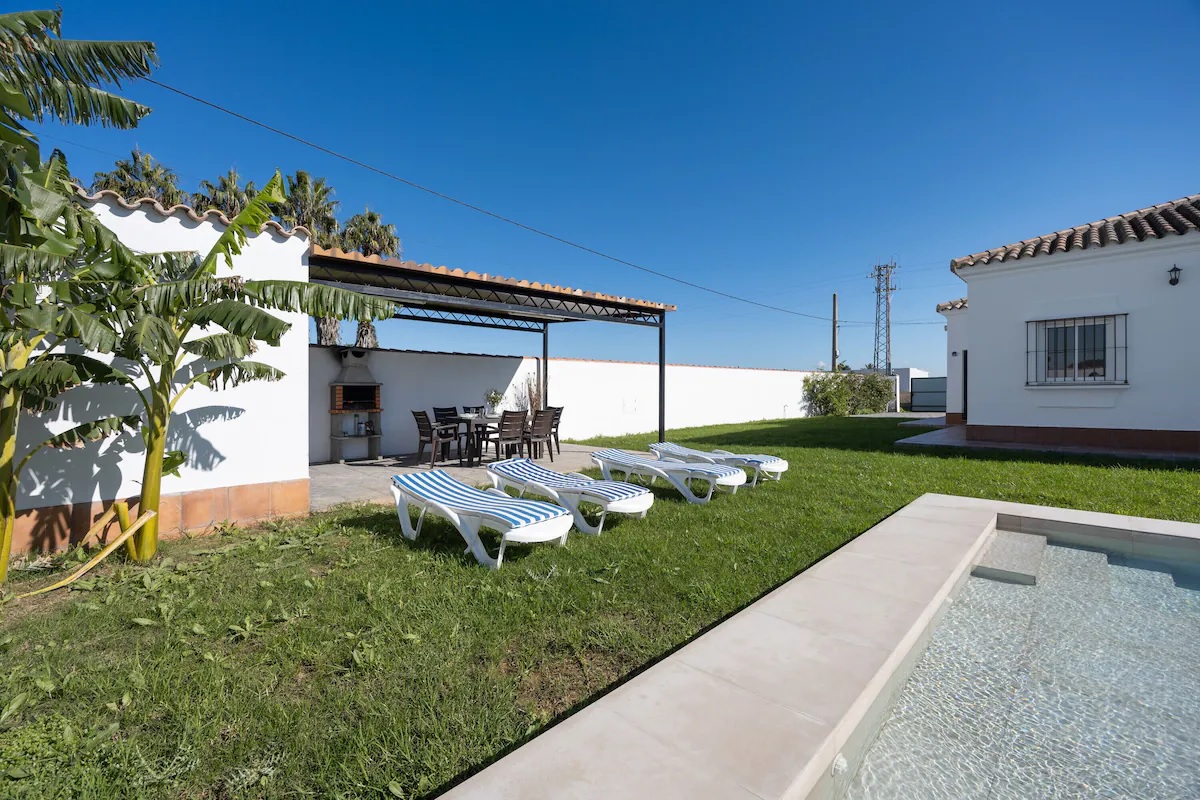 El chalet vacacional Chalet La Barrosa se encuentra en Chiclana de la Frontera y es perfecto para unas vacaciones inolvidables con tus seres queridos. La propiedad de 120 m² consta de salón, cocina, tres dormitorios y dos baños, con capacidad para seis personas. Entre sus comodidades adicionales se incluyen wifi de alta velocidad (apta para videollamadas) con un espacio de trabajo dedicado para trabajar desde casa, televisión, aire acondicionado en el salón y el dormitorio principal, y lavadora. También hay una cuna disponible.